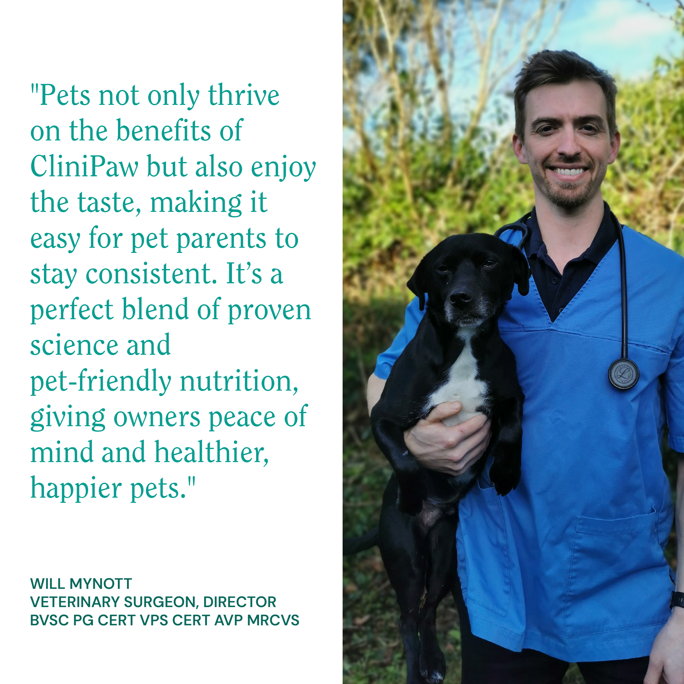 "Pets not only thrive on the benefits of CliniPaw but also enjoy the taste, making it easy for pet parents to stay consistent. It’s a perfect blend of proven science and pet-friendly nutrition, giving owners peace of mind and healthier, happier pets."